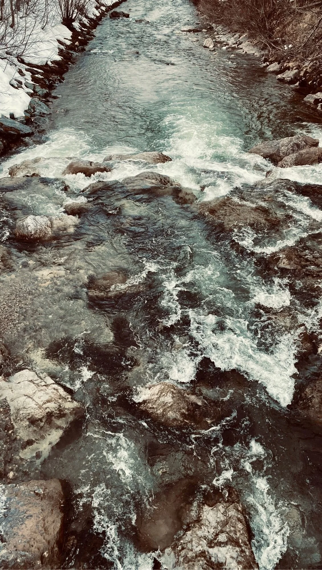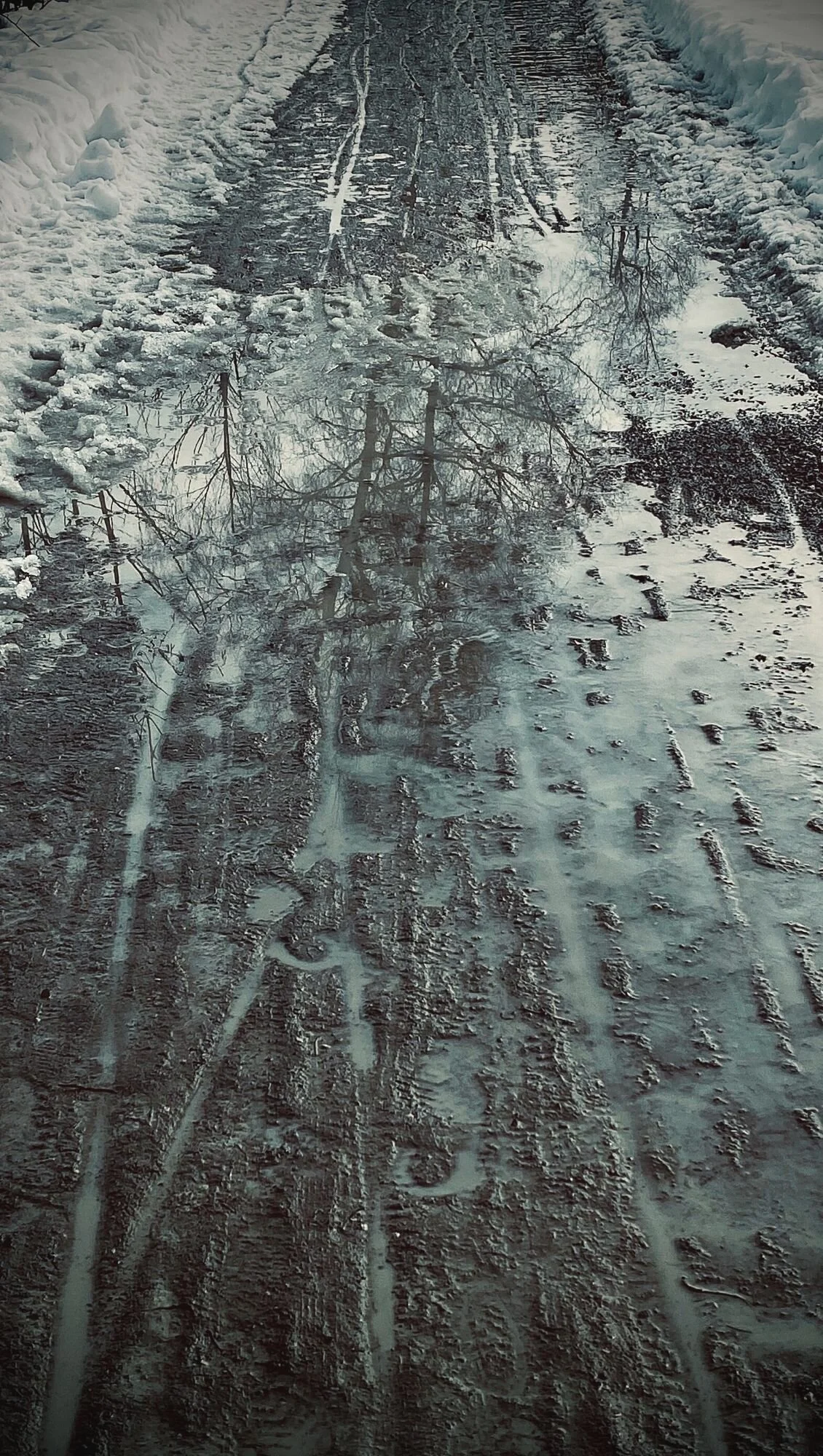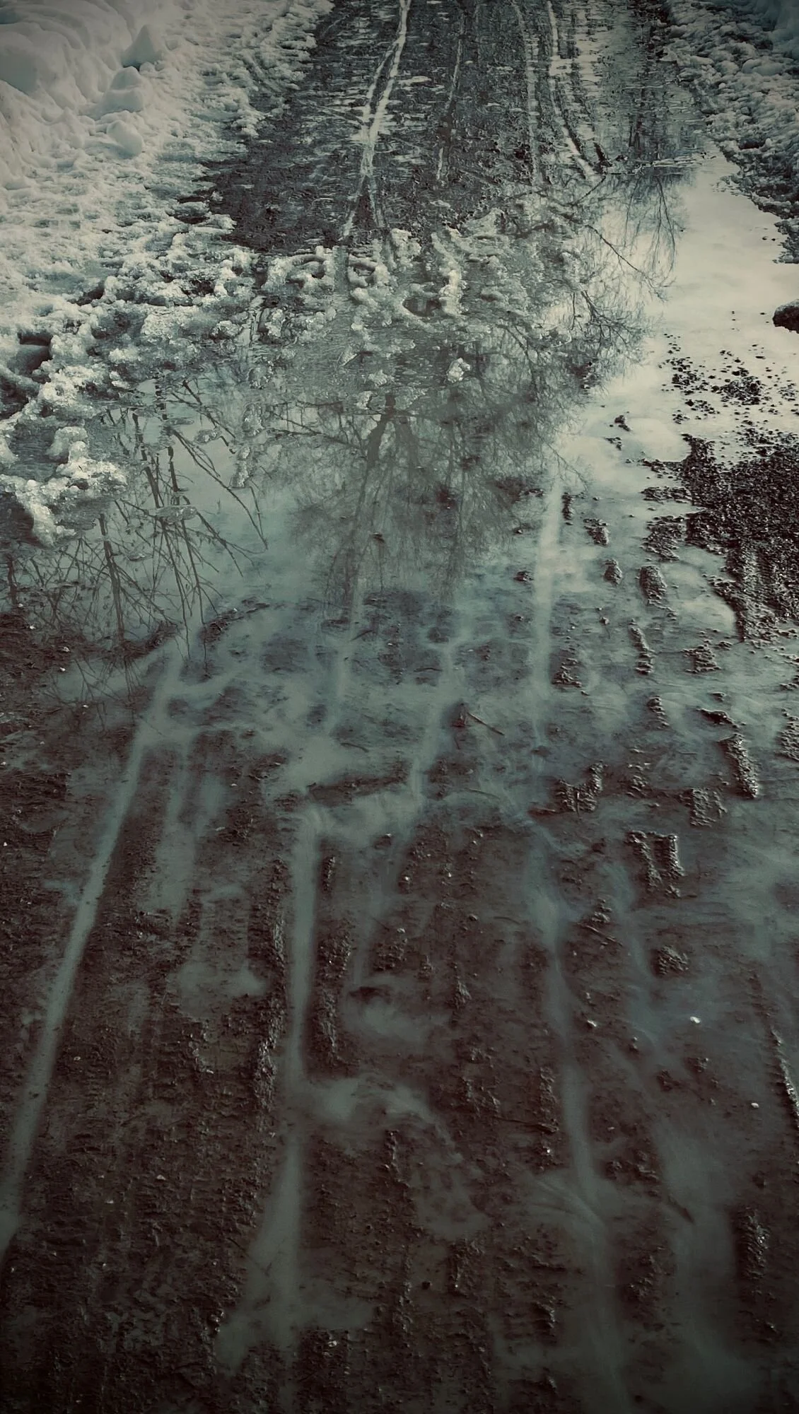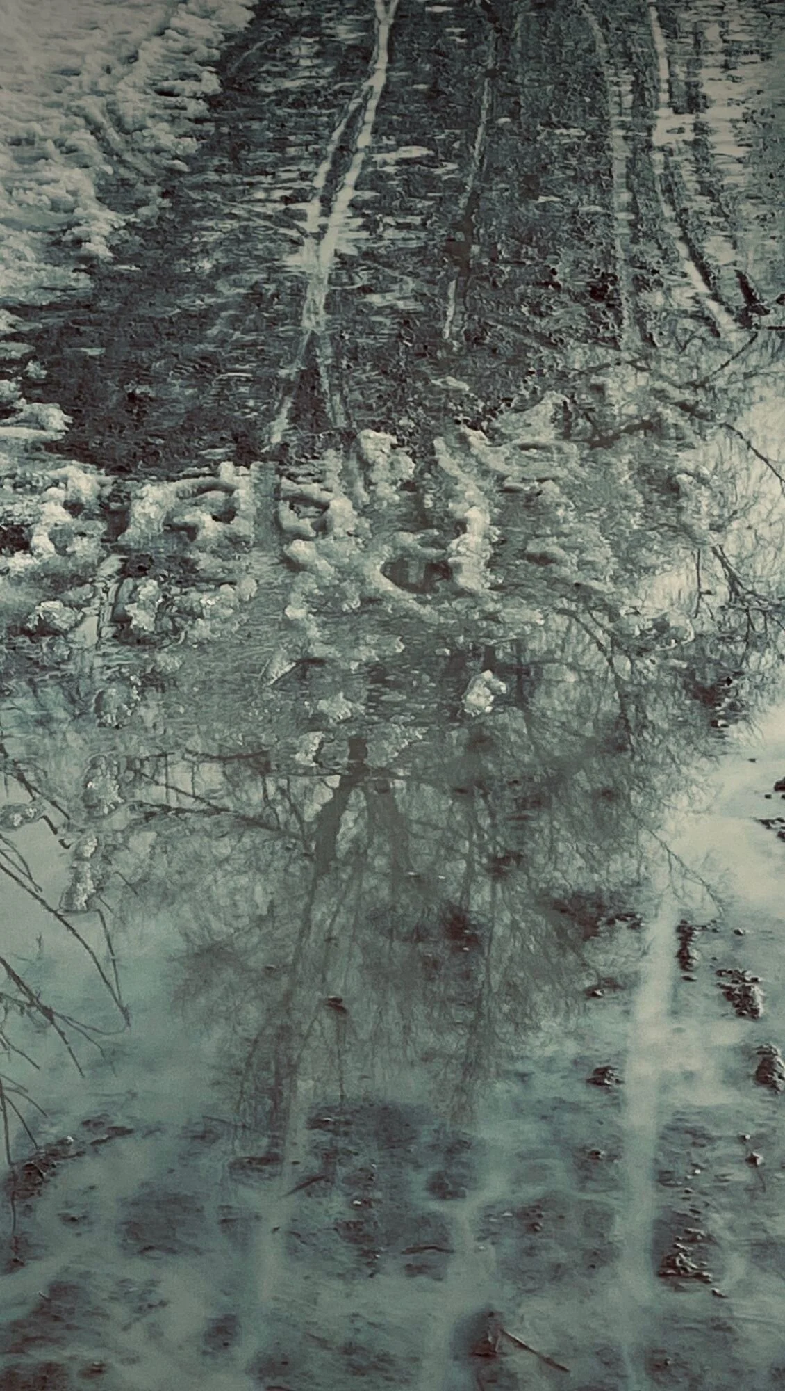 From one world to another, the edges are blurred as I walk over/into/above the reflections on the path next to the river.