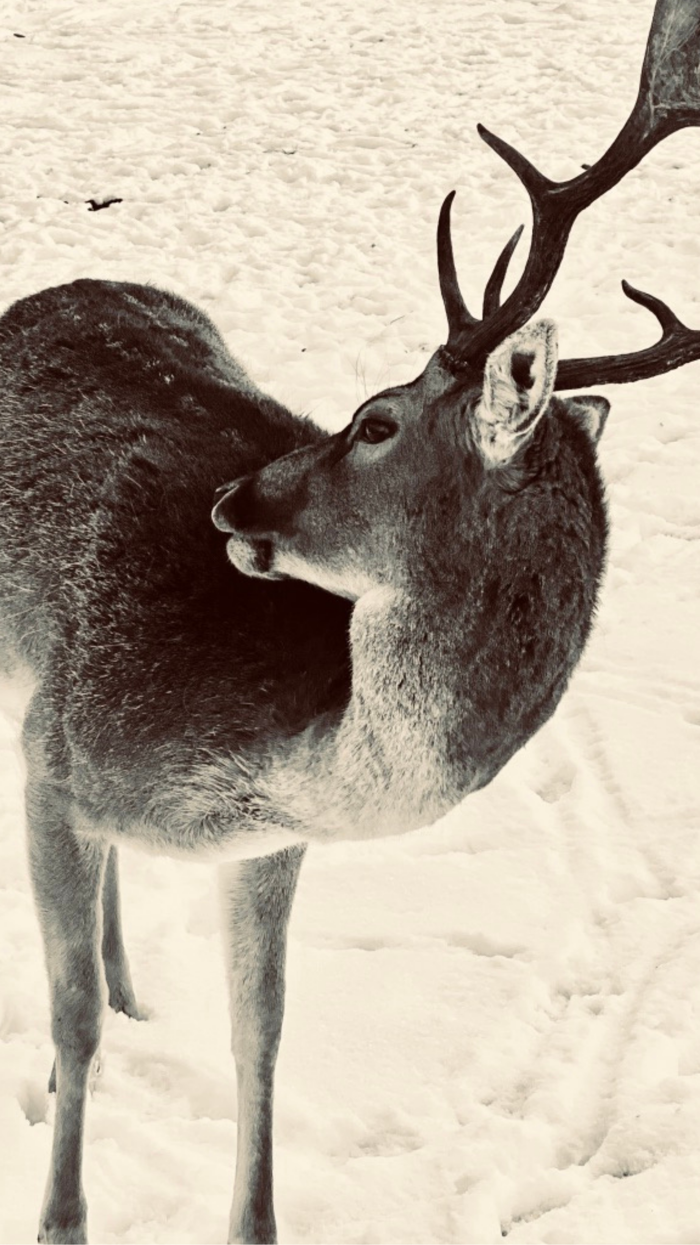 A frozen spiders web evokes the string to guide us through the labyrinth, crystals embellishing the edges of leaves, the incredible creativity of water as crystals and ice. At the end of the walk some friendly connection with some deer recalling the myth of the female deer who passes the arc of the sky carrying the sun on the solstice.